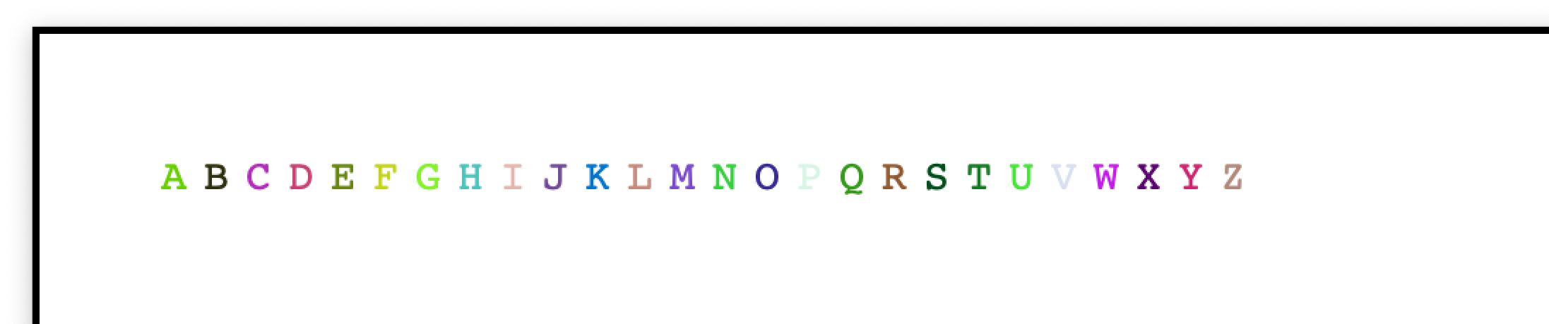 Lab12 "Grapheme to Color Synesthesia" Program that makes use of an interpreter and two parallel arrays to simulate grapheme to color synesthesia. GraphemeToColorSynesthesia code + GraphemeToColorSynesthesia demo