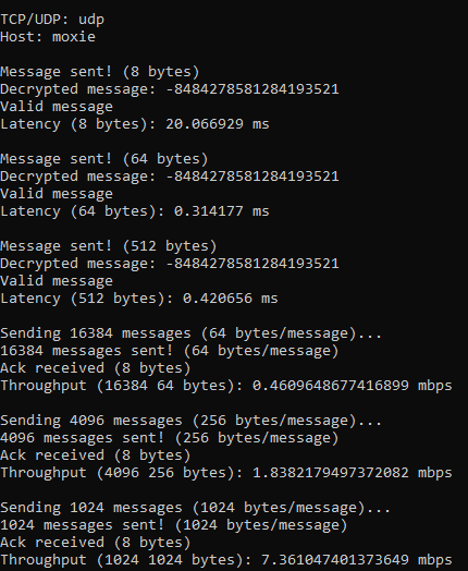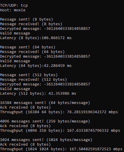 Demos are from rho to moxie using TCP and UDP. These demos were done separately and may not be accurate to the data graphed.