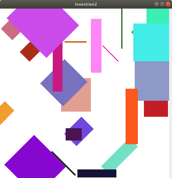 Programming Assignment 1: Microworld Problem Solving" Programs to create images in the Nonrepresentational Painting World (NPW) and sonic sequences the Modular Melody World (MMW). RedCross code + RedCross demo | KanizsaSquare code + KanizsaSquare demo | Dots code + Dots demo | ThreeFigureMinuetThing code + ThreeFigureMinuetThing demo | MinuetFigureListener code + MinuetFigureListener demo | AfterJSB code + AfterJSB demo