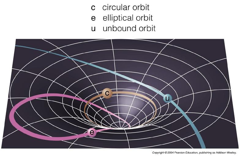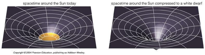 - The curvature of space near a massive object (e.g. Sun) forces