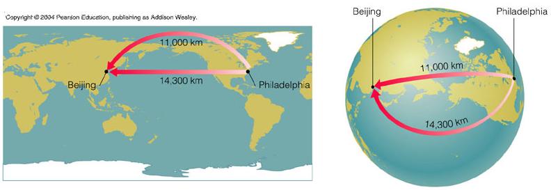 The shortest path in a curved space may not necessarily be a "straight line".