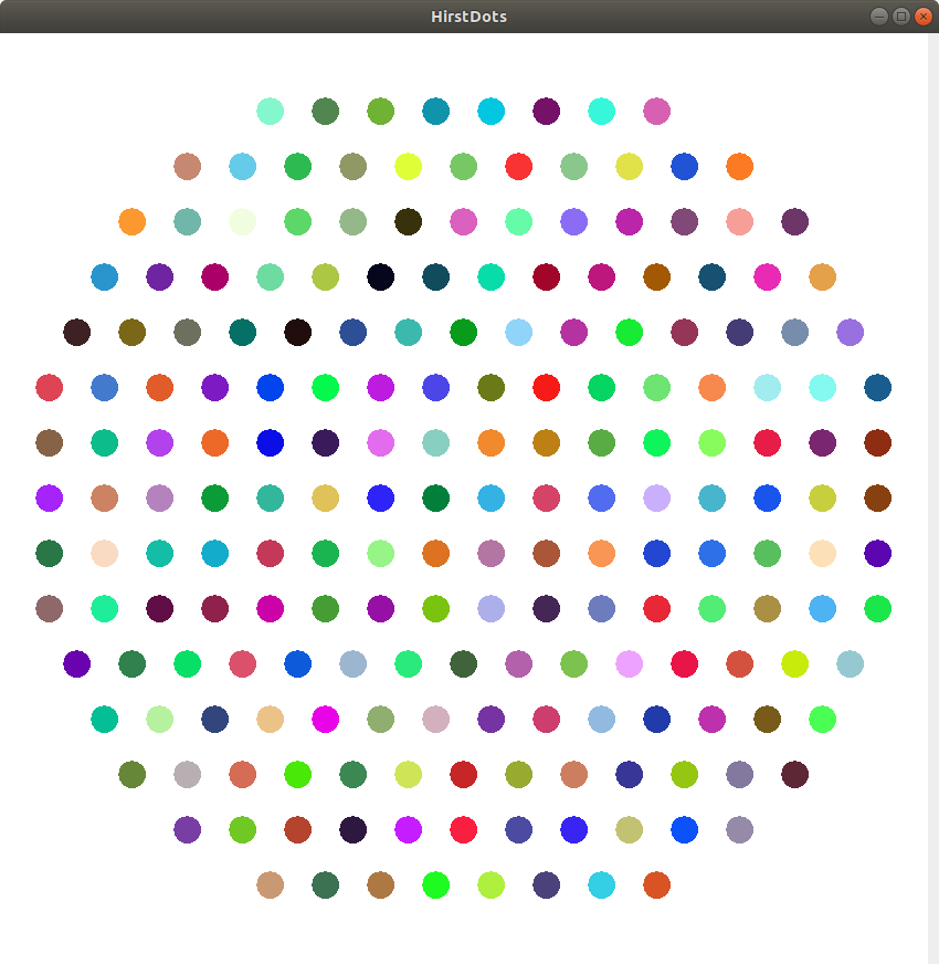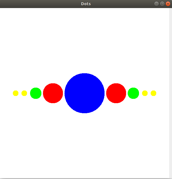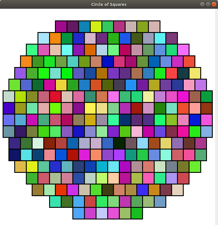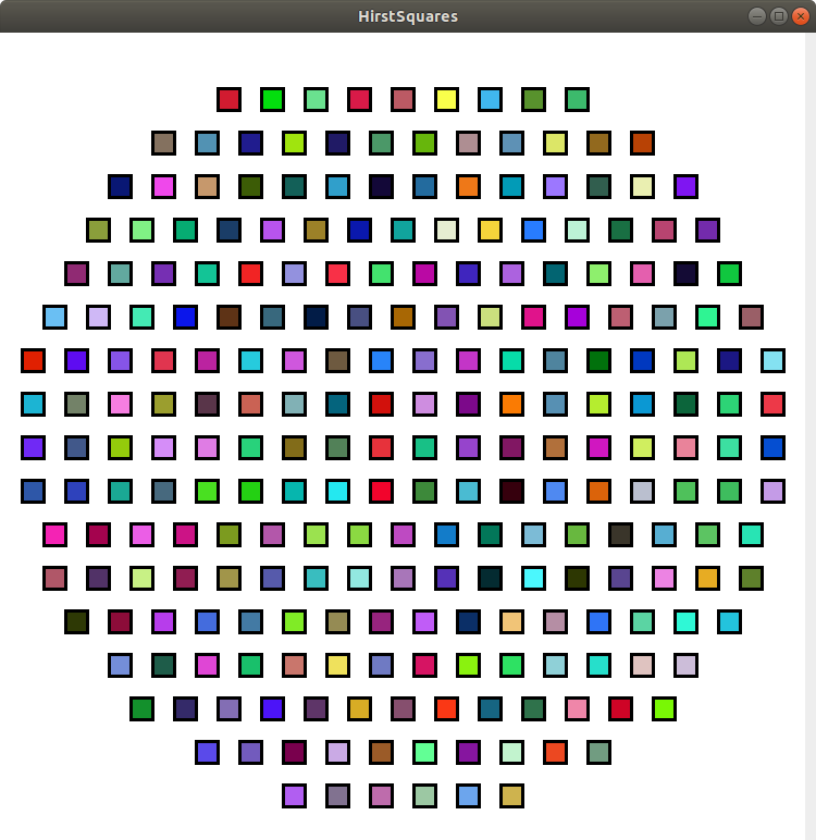 Lab4 "ExpressionThing and ShapesThing" To make a program that shows various expressions and a program that calculates the area, perimeter, and diagional of a square. ExpressionsThing code + ExpressionsThing demo | ShapesThing code + ShapesThing demo Lab5 "An Interpreter Featuring Loop Forever and Selection" Programs that paint different colored circles. Interpreter1 code| Interpreter2 code | Interpreter3 code | Interpreter demo1 | Interpreter demo2 | Interpreter demo3 | Interpreter demo4Assignment 4: "Nonrepresentational Artistic Expressions" Programs to create images in the Nonrepresentational Painting World (NPW) and sonic sequences the Modular Melody World (MMW). TextRectangles Code + TextRectangles demo | CircleOfSquares code + CircleOfSquares demo | HirstSquares code + HirstSquares demo | HirstDots code + HirstDots demo | SimpleDots code + SimpleDots demo | Invention1 code + Invention1 demo | Invention2 code + Invention2 demo | Stella code + Stella demo