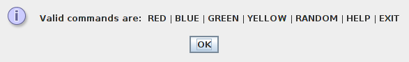 Lab 5: "Working with Interpreters!" How to use interpreters to make and utilize commands 101! Interpreter1 code | Interpreter2 code | Interpreter3 code | Image of a Colored Dot | Image of Input Dialog Box | Image of Help Menu | Image of Error Message