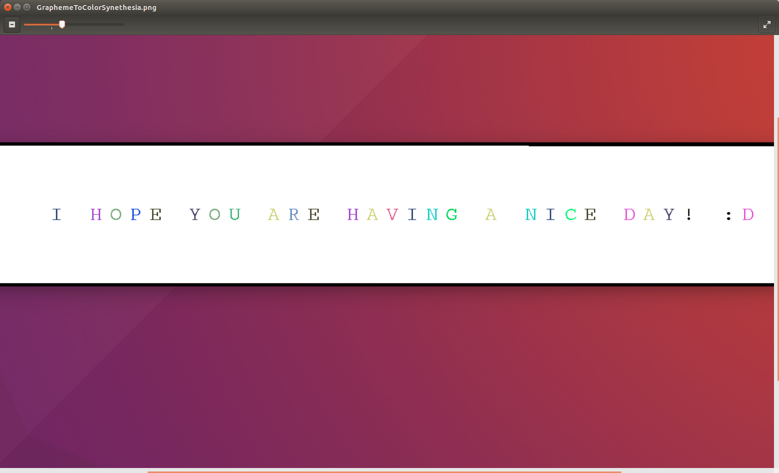 Lab 12: "Grapheme to Color Synethesia!" Program that simulates and tests the Grapheme to color Synethesia. Grapheme to Color Synesthesia code | Graphem to Color Synesthesia demo | Input Box Image |